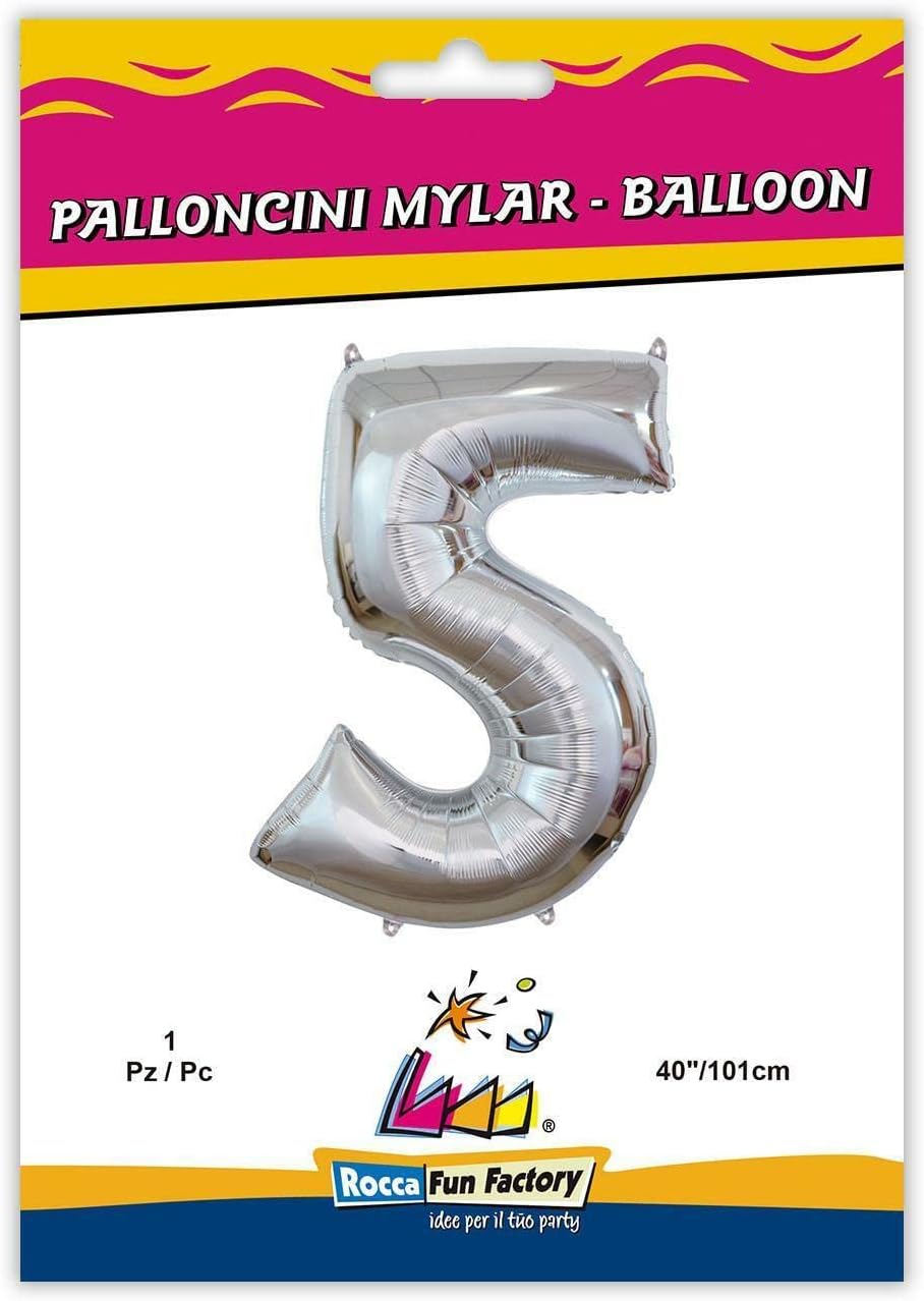 Rocca fun factory, palloncino numero 5 argento mega 40 – 101 cm 1 pz