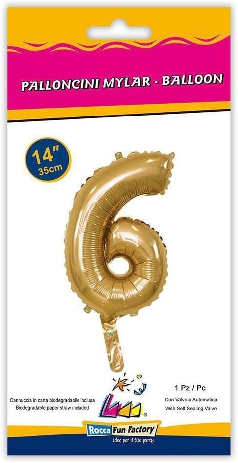 Rocca fun factory, palloncino numero 6 oro minishipe 14 – 35 cm 1 pz