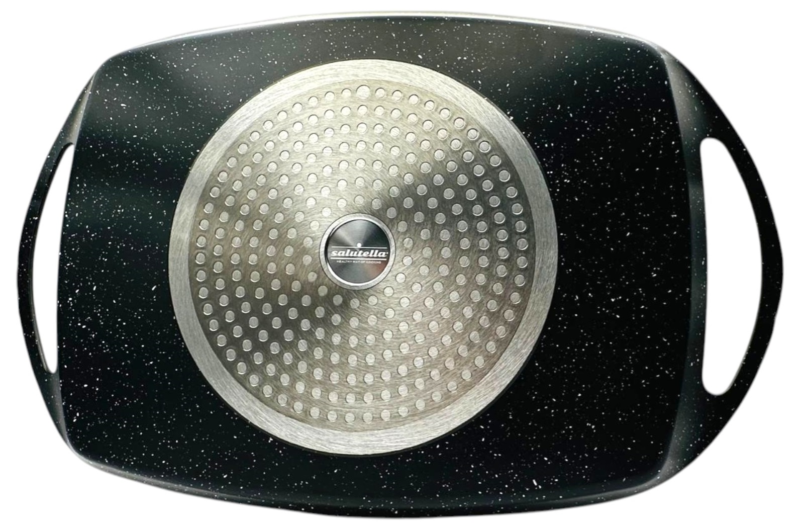 SALUTELLA BBQ È una linea di Bistecchiere con fondo adatto a tutti i piani cottura compreso l’induzione. L’elevata qualità dell’antiaderente Dylon® garantisce un’ottima resistenza all’abrasione. Fondo a induzione Amica dell’ambiente DYLON PLUS È un rivestimento antiaderente, certificato sulla base dei più alti standard qualitativi internazionali, è marchio esclusivo di River. Ha un’ottima anti-aderenza con una superficie che al tatto risulta resistente ai cicli di abrasione. L’antiaderente certificato
