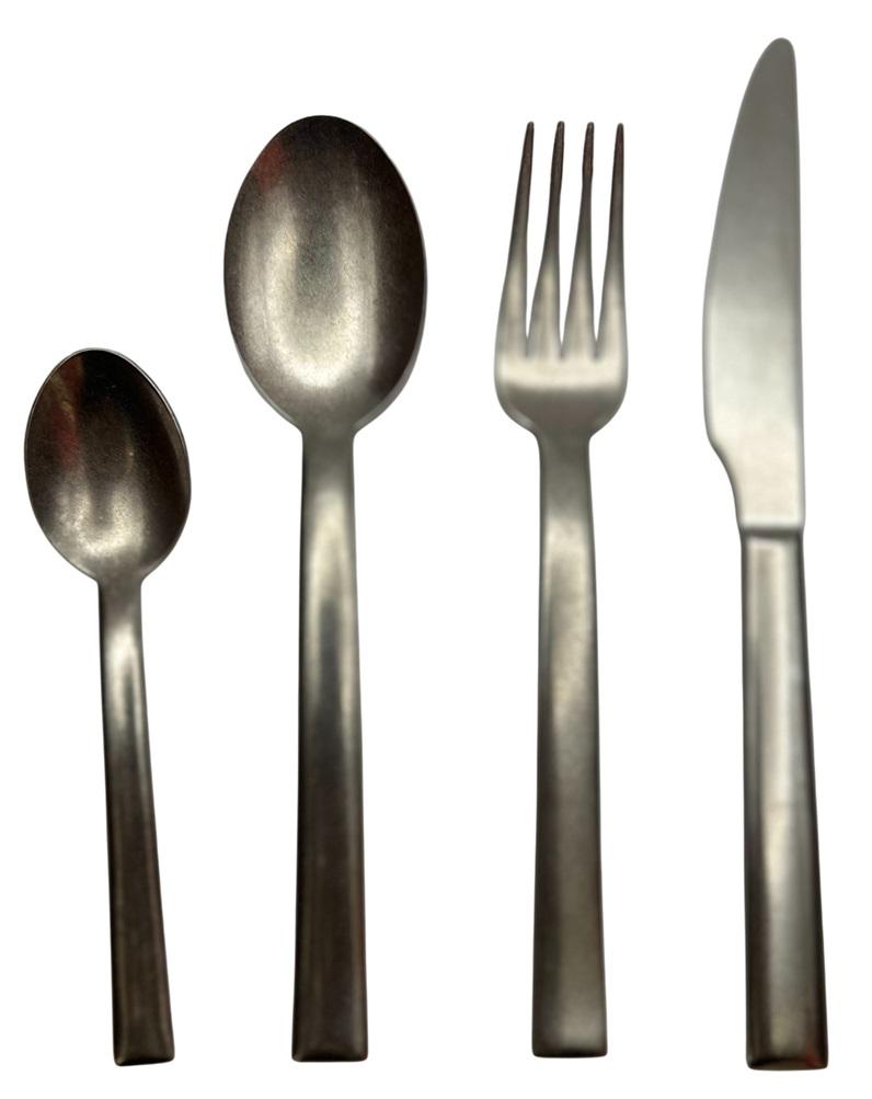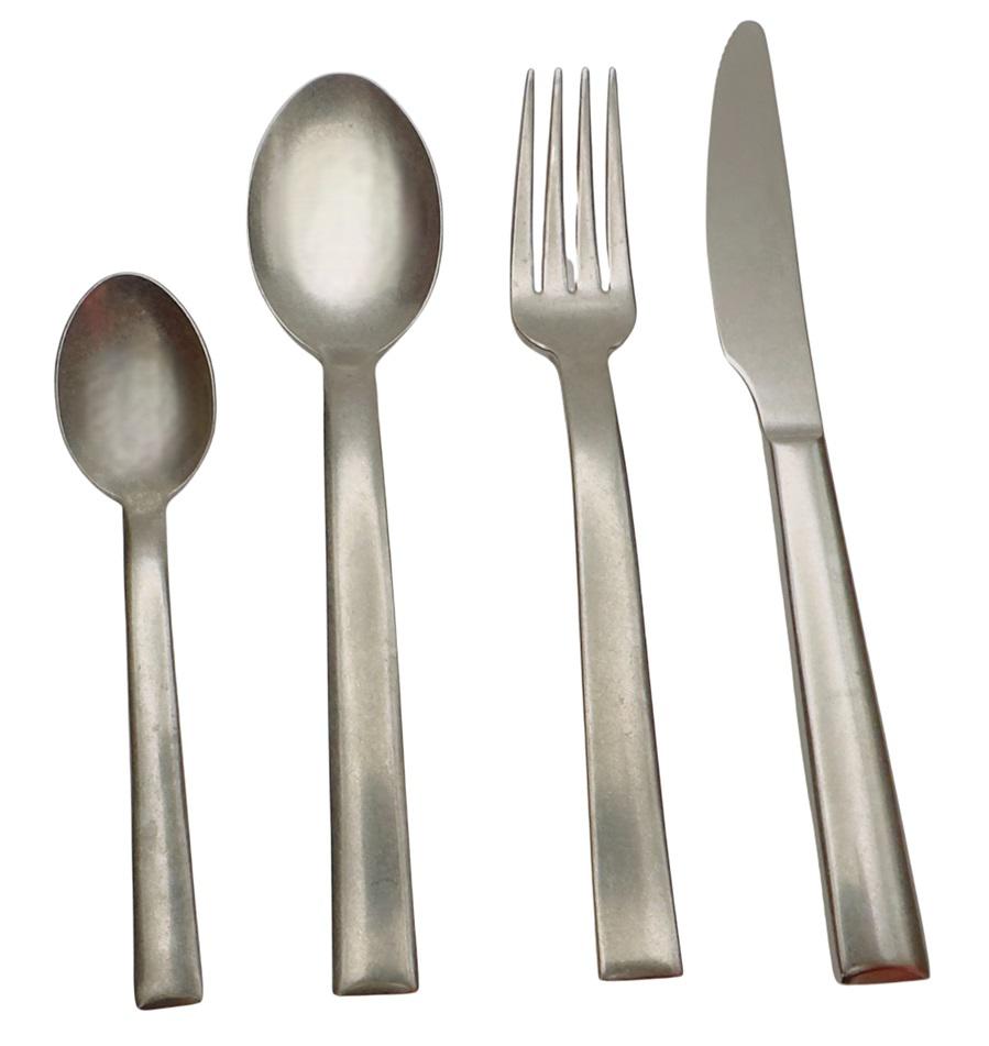 Il servizio comprende una scatola Salvinelli composta da: 6 forchette tavola 6 cucchiai tavola 6 coltelli tavola 6 cucchiaini caffè Spessore posate: 4 mm