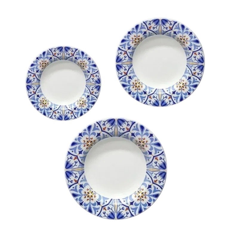 Il servizio comprende: 6 piatti piani 6 piatti fondi 6 piatti frutta