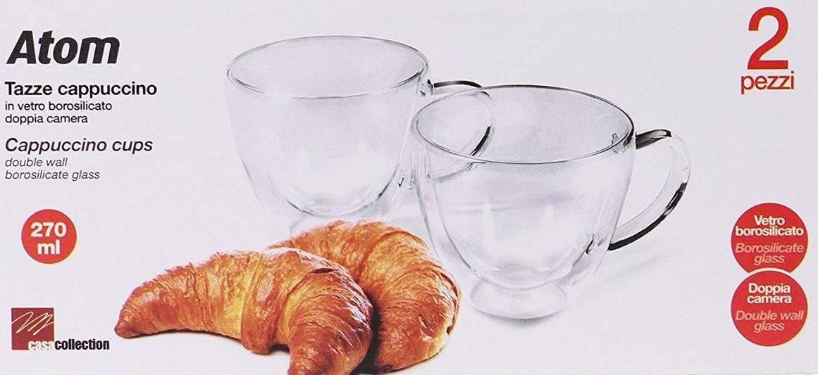 Tazzina Cappuccino, Vetro Borosilicato Senza Piattino Il Prodotto E Doppio Vetro Termico Il Prezzo S’Intende Per La Confezione Da 2 Pezzi.