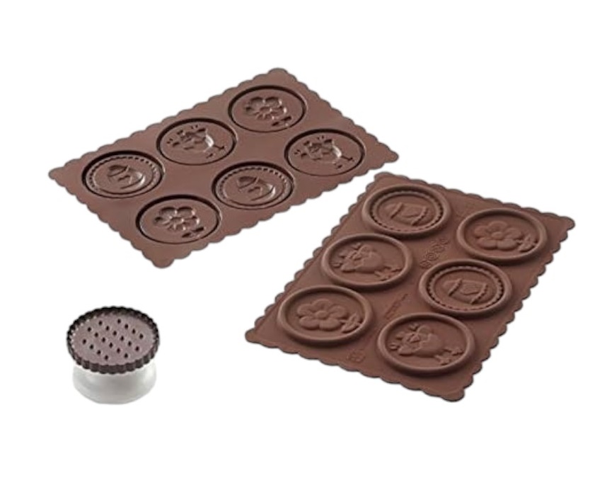 Il Kit È Composto Da Un Pratico Tagliapasta E Da Uno Stampo In Silicone,Permette Di Preparare Biscotti In Pasta Frolla Con Placchette In Cioccolato O Gelee Di Frutta Perfetti Come Snack O Dessert, Oppure Biscotti In Preparazioni Salate Con Sfiziose Gelatine Al Pomodoro Da Proporre Come Originali Antipasti.Dimensioni:Ø 57 H 4,5 Mmvol. Tot: 36 Ml