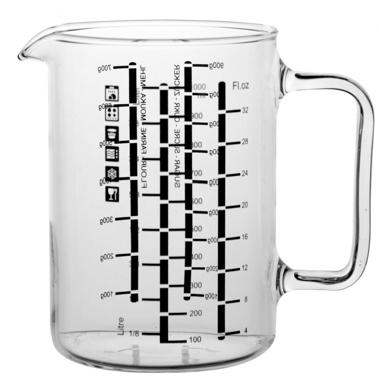 Volume: 1 L Con Manico E Gradazione Fino A 800 Ml (Farina 500 G, Zucchero 600 G) Adatto Al Forno, Al Microonde, Al Frigorifero, Al Congelatore, Al Piano Cottura, Al Fornello A Gas Con Distributore Di Calore E Alla Lavastoviglie Il Fondo Di Vetro E Resistente Al 100% Sulla Fonte Di Calore