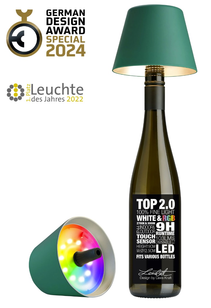 Sompex Top 2.0, lampada per bottiglie ricaricabile verde