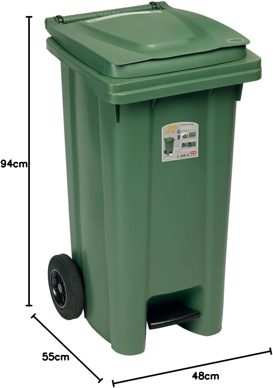 Il Bidone Carrellato Da 120 Litri È Un Prodotto Estremamente Pratico E Funzionale Per L’Utilizzo Outdoor, Adatto Sia Per La Raccolta Dei Rifiuti Che Per Il Contenimento Dello Sfalcio Dell’Erba E Del Fogliame. Grazie Al Comodo Maniglione E Alle Ruote In Gomma, Lo Spostamento Diventa Semplice E Agevole. E’ Presentato In Due Versioni: Con Apertura Del Coperchio A Pedale O Con Apertura Del Coperchio A Sollevamento Manuale. Il Prodotto È Completato Da Un Utile Anello Ferma Sacco E Da Un Tappo Apribile Collocato Sul Fondo Che Permette Lo Scolo Dell’Acqua Dopo Il Lavaggio. E’ Un Valido Aiuto Nel Tenere In Ordine Le Zone Verdi Della Casa Ed È Particolarmente Semplice Nella Pulizia E Nell’Impiego. Cm 54,5X49,5X 94 H 120 Lt 31,7 Galloni