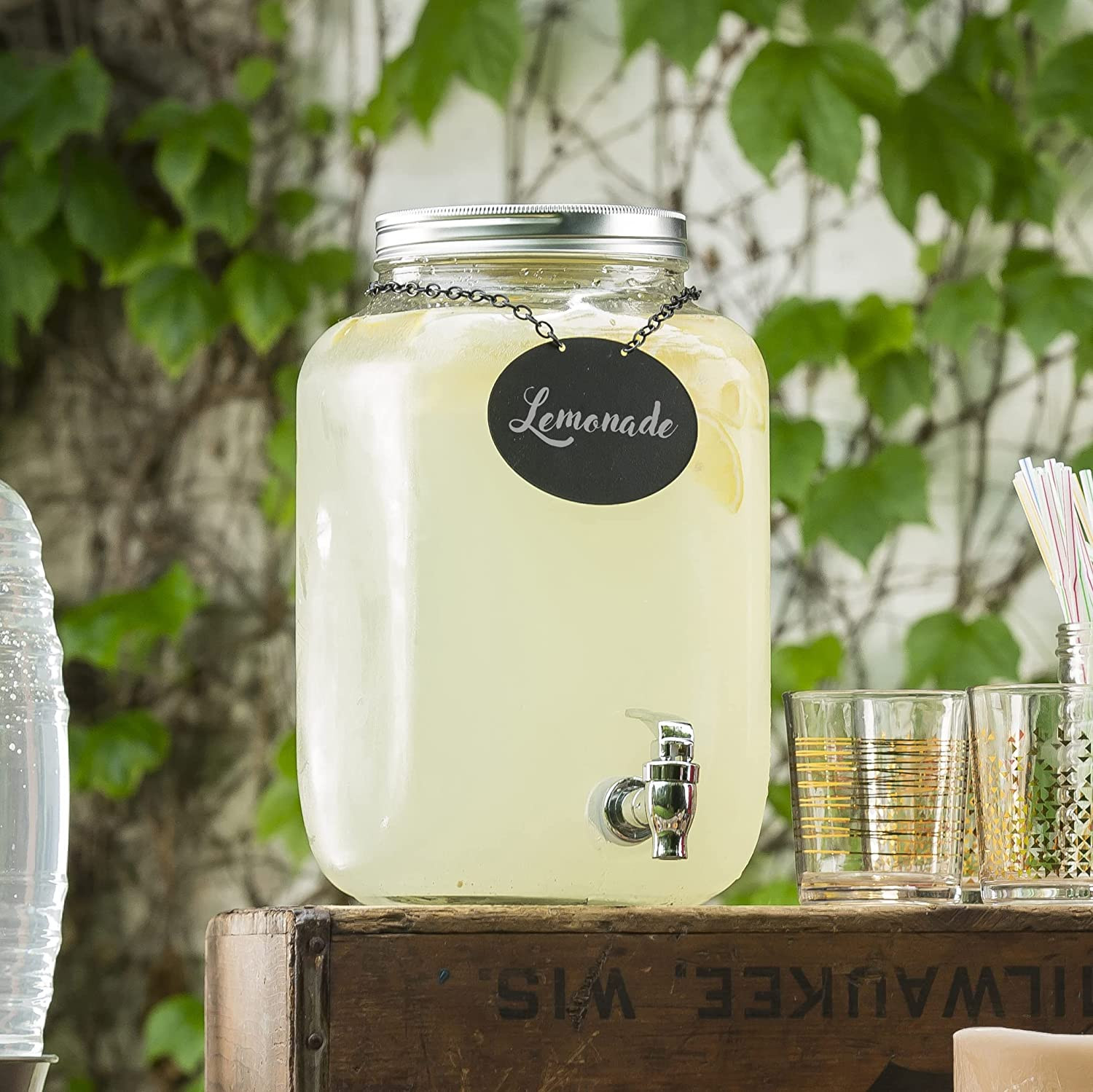 Dispenser Per Bevande Fredde : Soda-Lime Glass Viene Fornito Con Una Lavagna Collana Infusore Rimovibile – Può Essere Riempito Con Frutta E Spezie Per Un Maggiore Sapore Lavabile In Lavastoviglie Misure: 19.5 X 26 X 32Cm