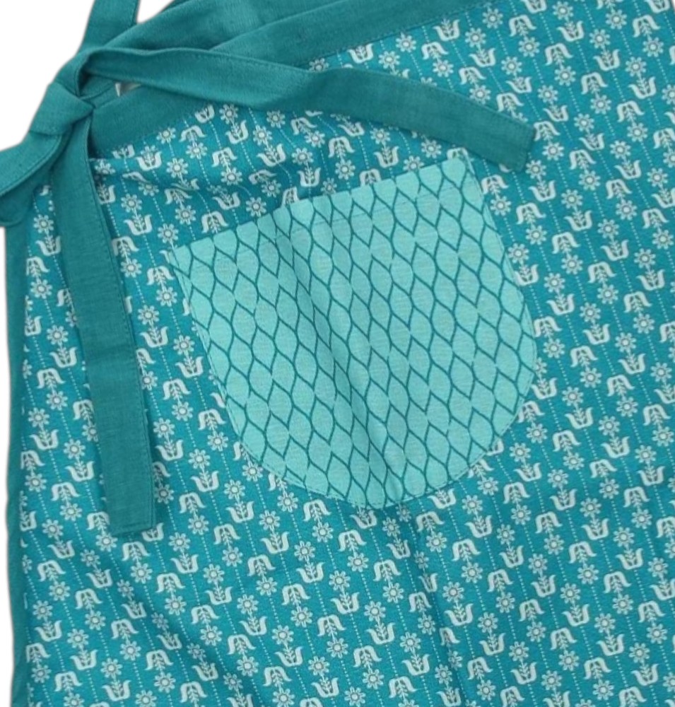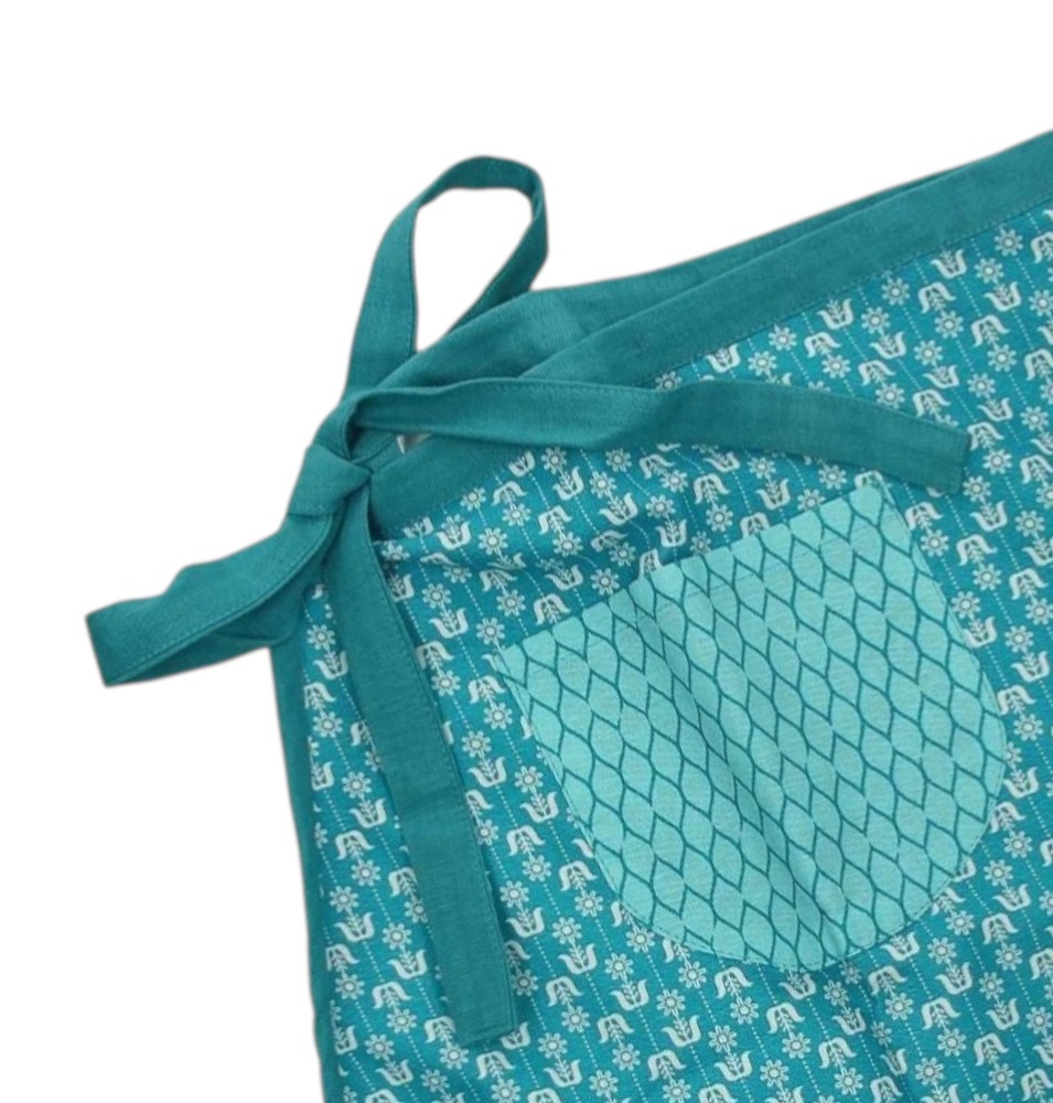 Tognana katanè turchese, grembiule vita con tasca e decori, in cotone
