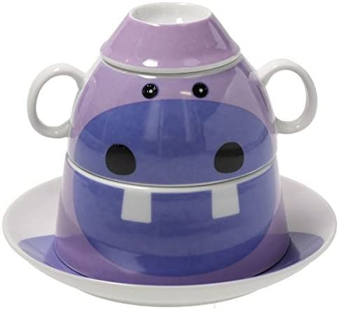 Tognana Set 4 Pz Impilabili Salvaspazio Servizio Bimbo Ippotamo Porcellana Composto Da : Nr 1 Piatto Dessert 19X16 Nr 1 Fondina Cm 16 Nr 1 Tazza 2 Manici Cc300 Nr 1 Portauovo