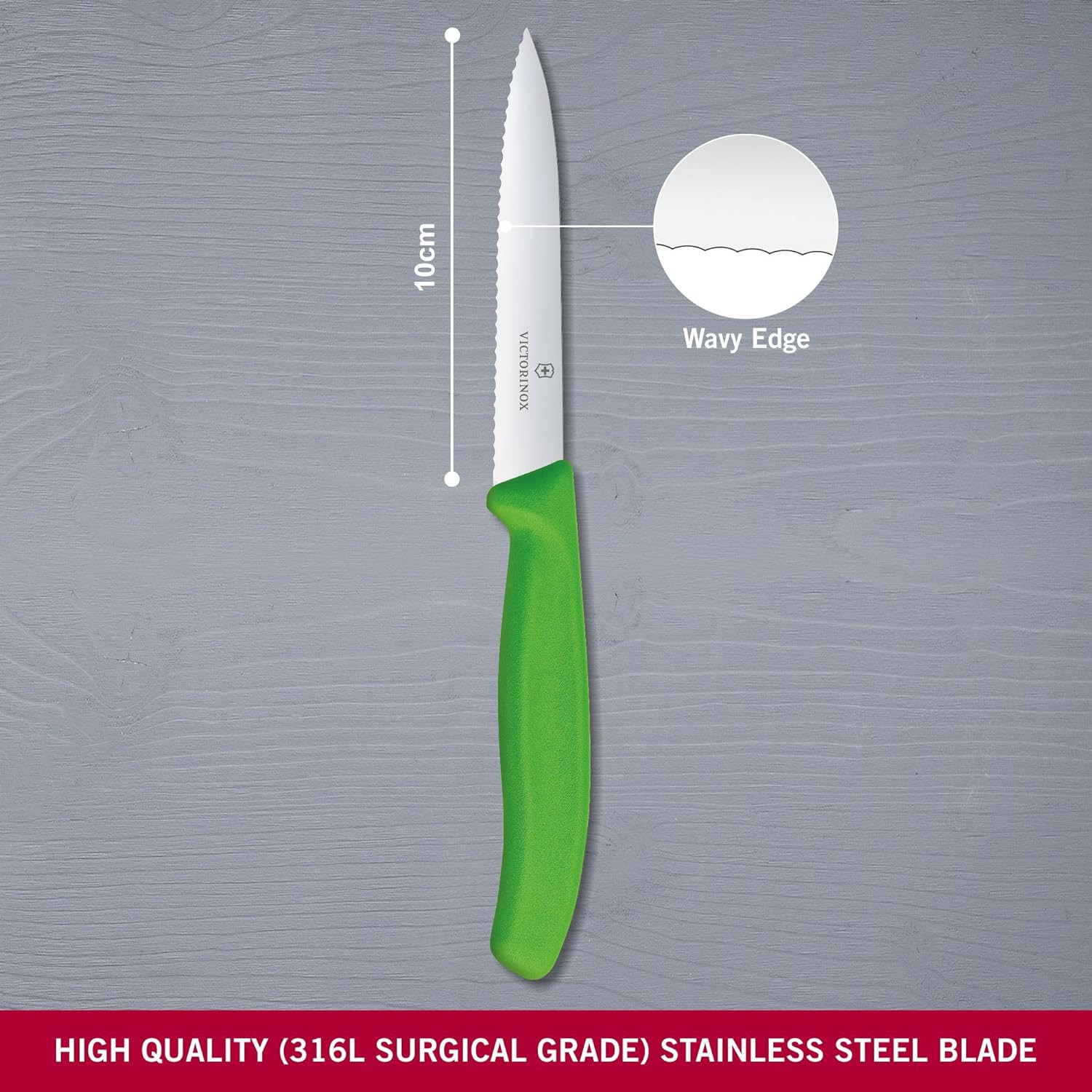 Affetta i frutti morbidi con facilità Sbuccia e taglia a dadini senza problemi Taglia velocemente le bucce più dure Prepara piatti complessi Prepara qualsiasi piatto come un professionista con questo coltello per verdure. Questo coltello versatile eccelle nell’affettare pomodori, avocado e fichi, e taglia senza sforzo anche melograni, litchi e frutti della passione. Per affettare, tagliare a dadini, sbucciare o affrontare lavorazioni più complesse, questo coltello è pronto per qualsiasi sfida. Coltello per verdure a filo ondulato con punta appuntita Questo coltello per verdure è dotato di un’affilata lama professionale in acciaio inossidabile a filo ondulato con punta appuntita, ideale per un’ampia gamma di attività di preparazione da svolgere con precisione. Il suo leggero manico ergonomico è progettato per offrire comfort e controllo ottimali. Realizzato in Svizzera e adatto alla lavastoviglie, garantisce affidabilità ed efficienza per l’uso quotidiano in cucina. Altezza: 12 mm Lunghezza: 212 mm Ampiezza: 23 mm Peso: 27 g Lunghezza della lama: 10 cm Materiale: Polipropilene (PP) Lavabile in lavastoviglie
