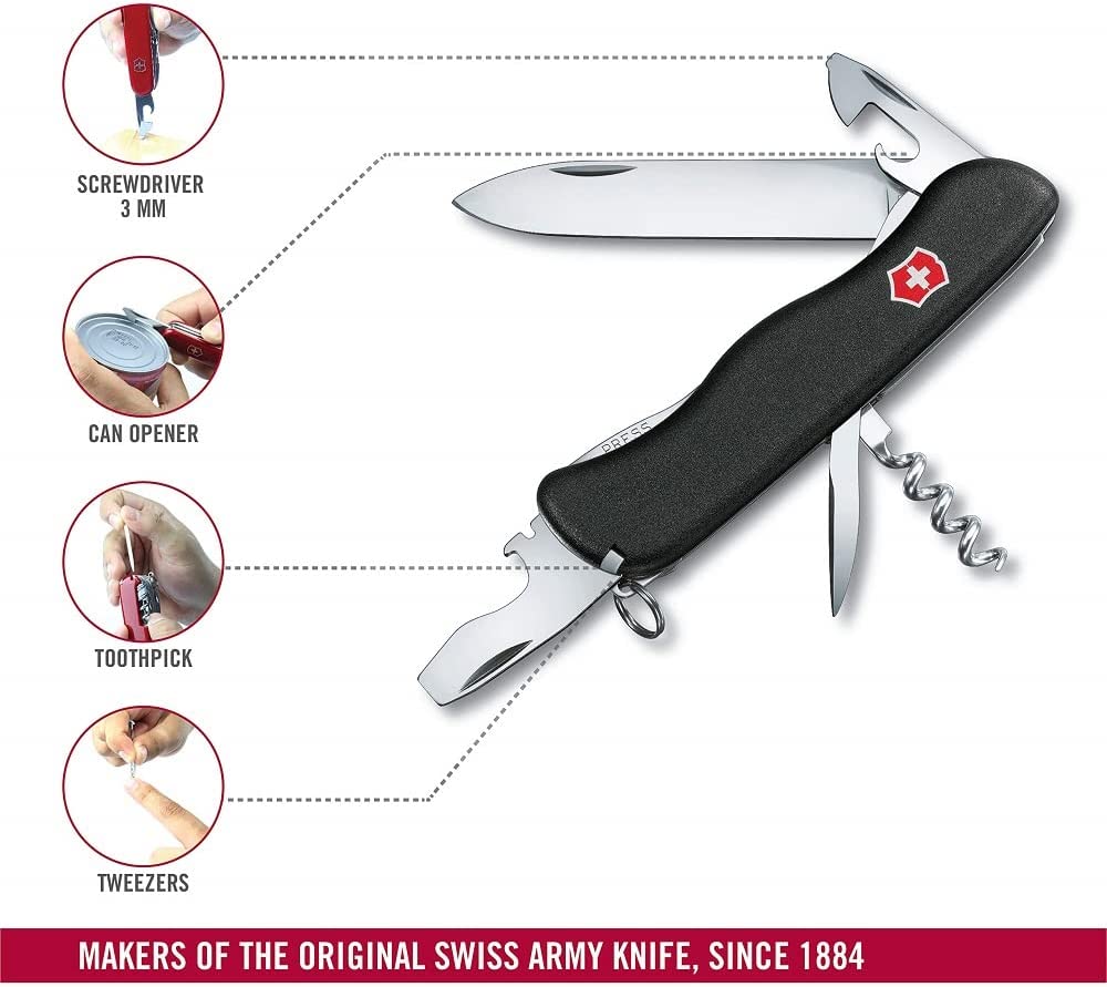L’Accessorio Ideale Per Il Tuo Cesto Da Picnic. Caratteristiche Principali: Con Lama Bloccabile Grande E Apribottiglie Bloccabile Con Cacciavite Coltellino Svizzero Con 11 Funzioni, Prodotto In Svizzera: Apribottiglie, Apriscatole, Cavatappi, Anello, Lama Grande E Punteruolo-Alesatore. Cacciavite Da 3 Mm, Cacciavite Bloccabile Da 5 Mm, Stuzzicadenti, Pinzette, Spellafili Massima Qualità: I Prodotti Dell’Azienda Svizzera Victorinox Garantiscono I Massimi Standard Per Tutte Le Esigenze E Una Qualità Elevata Senza Compromessi. Gli Oltre 130 Anni Di Storia Di Victorinox, Sono Caratterizzati Da Obiettivi Duraturi: Tradizione, Qualità E Innovazione. Dimensioni: Altezza 16 Mm, Lunghezza 111 Mm, Peso 105 G. Materiale Dell’Involucro: Poliammide.