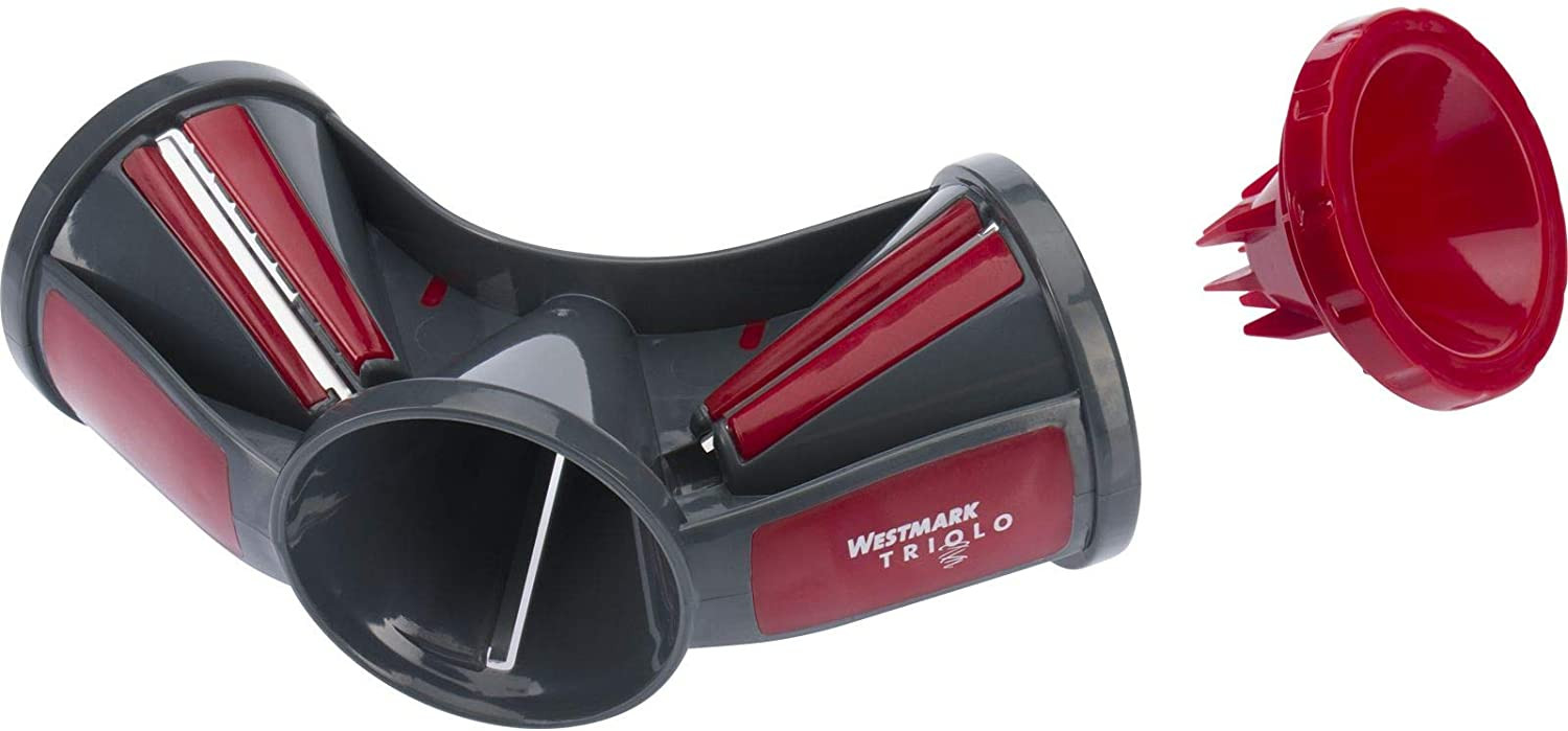 Affettaverdure A Spirale Manuale Con 3 Lame Diverse Per Tagliare Le Verdure A Spirale O Alla Julienne (In Modo Grossolano E Fino), Per Verdure Allungate Come Cetrioli, Zucchine E Carote Pratico Affettaverdure Con 3 Inserti A Cono E Lame Molto Affilate In Acciaio Inox Per Tagliare Le Verdure In Spirali In Modo Facile, Rapido E Silenzioso, Per Creare Pasta Di Verdure, Insalate Con Verdure Crude, Ecc. Strumento Per Creare Spaghetti Di Verdure In Tutta Sicurezza Grazie Al Pressino, Facile Da Usare Grazie Alla Forma Ergonomica E Maneggevole A Boomerang, Dimensioni Compatte Per Una Soluzione Salva-Spazio Made In Germany, Prodotto Con Cura, Utensile Durevole E Resistente, Facile Da Pulire, Lavabile In Lavastoviglie, Lavaggio A Mano Consigliato Per Mantenere Le Lame Affilate Più A Lungo Contiene: 1X Westmark Affettaverdure A Spirale, Triolo, Dimensioni: 18,8 X 6,8 X 9,8 Cm